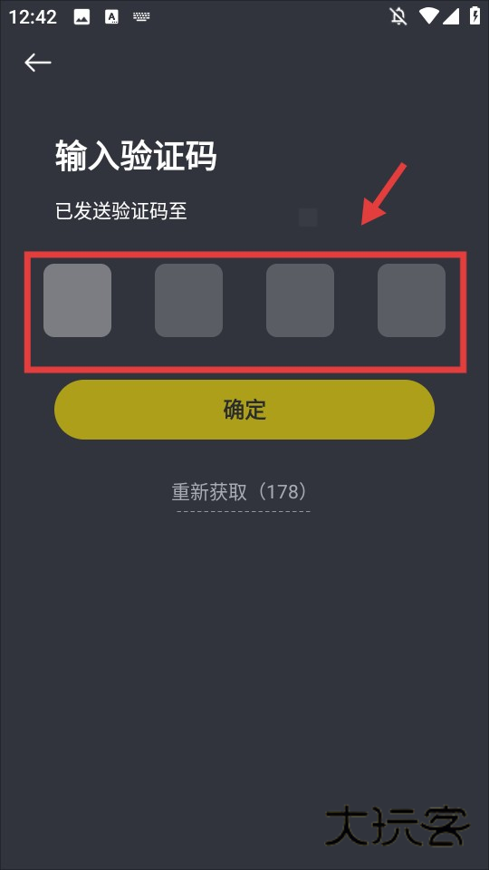 3、输入收到的验证码,完成账号注册操作。