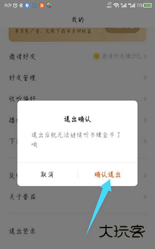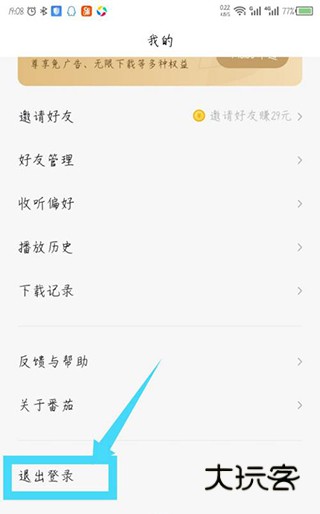 2、在我的页面,往下滑动屏幕到底部,点击底部的退出登录
