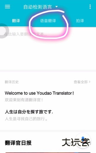 在手机打开【有道翻译官】。
