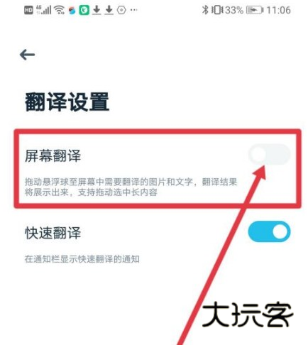 来到翻译设置,然后把【屏幕翻译】的按钮开启。