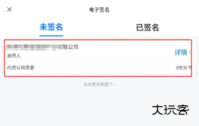 2.“未签名”页面有办理公司信息,直接点击公司名称,进入下一步