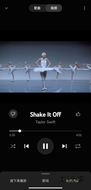 6、在歌曲的页面还可以观看本首歌的视频,并且下面还有一些其他选择,如:接下来播放、歌词、相关内容。