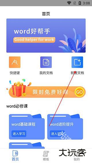 1、打开熊猫办公后,可在首页学习到关于word的基本信息以及小技巧,学习完后,可以选择新建文档。