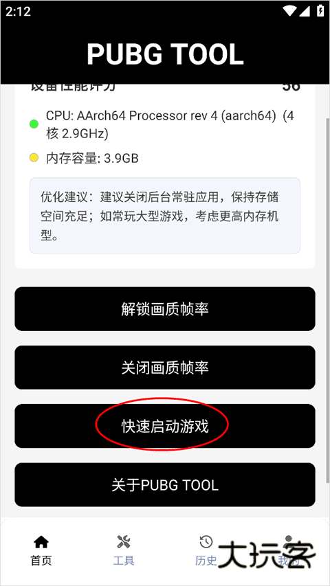 4、选择好帧率后,点击首页的快速启动游戏;
