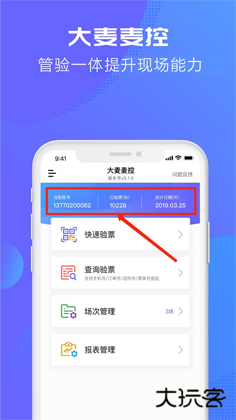 4、进入【报表管理】界面,每场的【场次】、【总售票数】、【总眼票数】以及【上座率】都实时刷新,一目了然,以上就是大麦麦控版app的使用方法了。