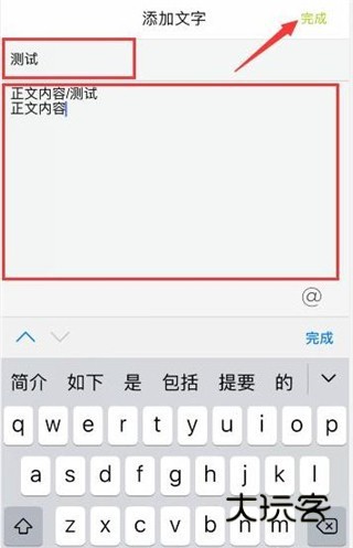 2、输入文章标题和文章正文内容,输入完成后,点击右上角“完成”