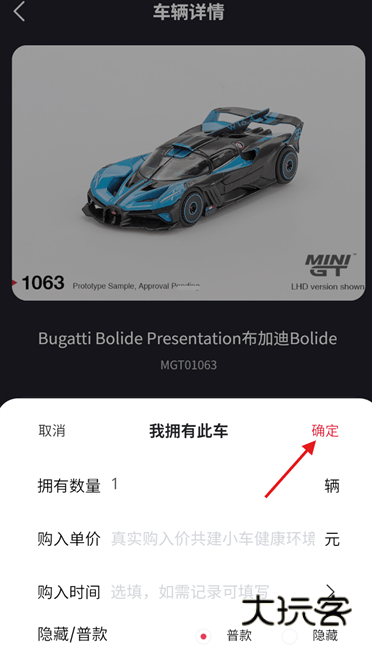 4、在弹出的信息填写框内,完善购车时间、价格、款式等细节,确认无误后点击确定完成添加。