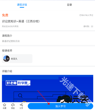 3、进入课程界面后,点击右下角的“加入学习”即可开始学习。