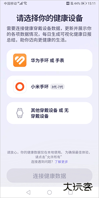 1、微信登录app后即可选择华为手表或小米手环的连接渠道点击