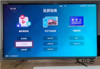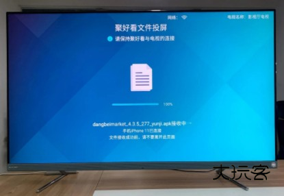点击【文件投屏】在手机里找到【当贝市场】安装包,点击即可投送到电视上