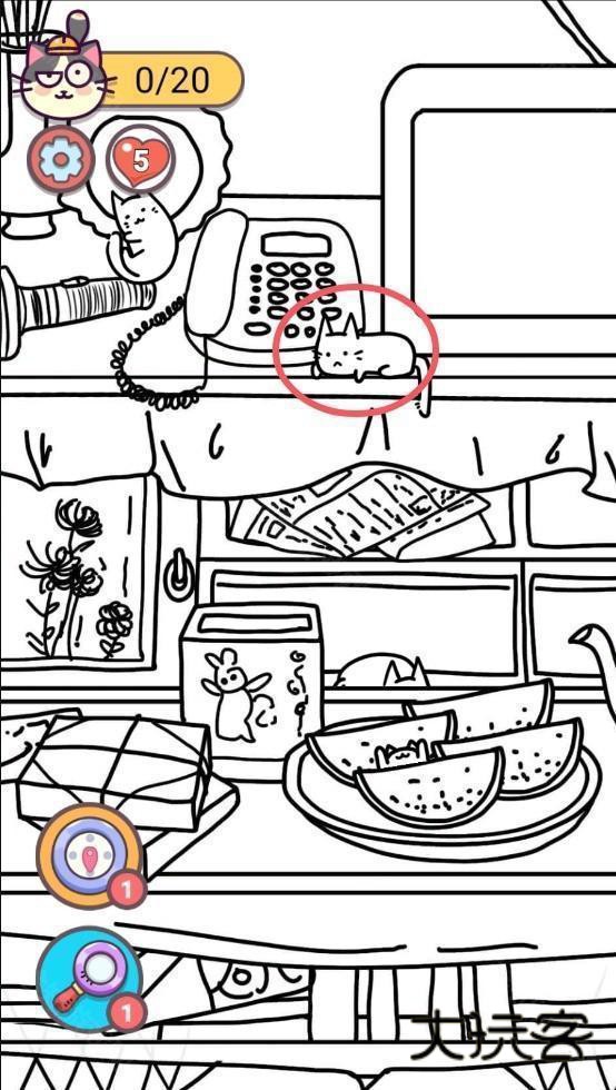 2、开始找猫,点击屏幕即可,还有道具帮助你更好的闯关。