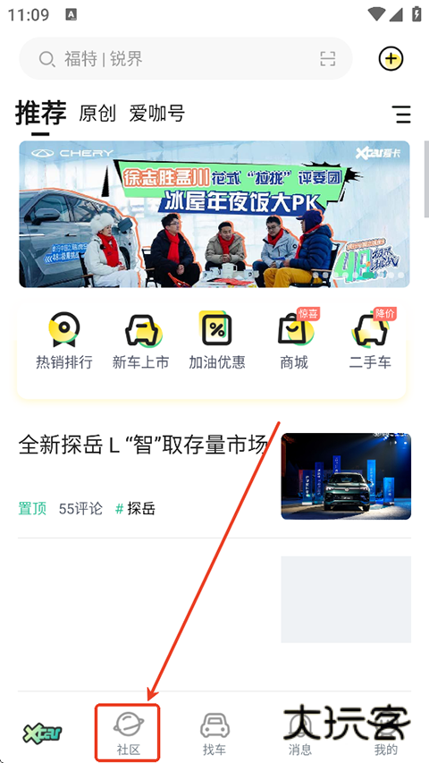 1、进入首页,选择社区;