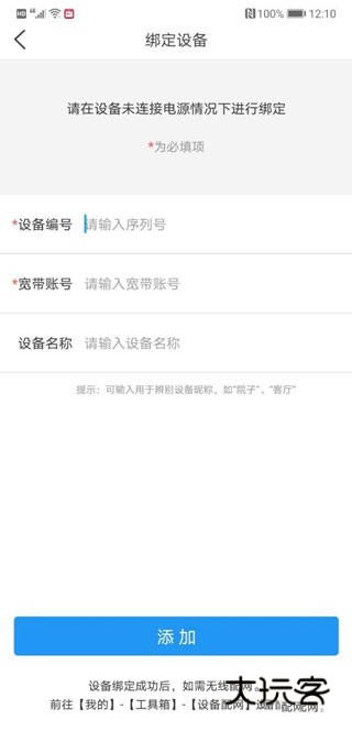 4、然后输入摄像头的序列号,宽带账号,以及设备名称,输入之后点添加即可;