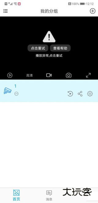 6、然后将摄像头通电通网就可以观看了,如果出现此页面,点击“点击重试”即可。