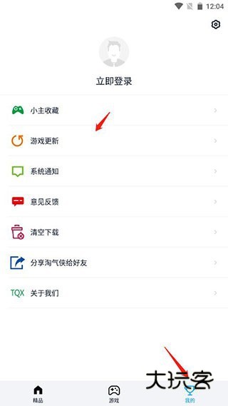 1、打开淘气侠,点击我的,进入游戏更新。