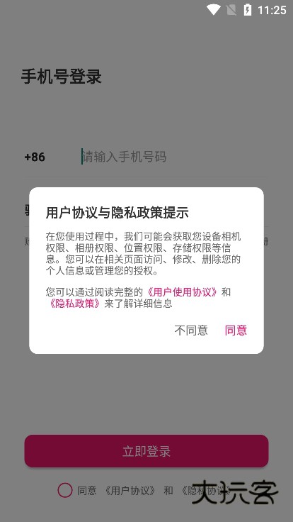 1、首先你需要在花灯下载网下载安装好软件,进入后先同意用户协议和隐私政策。