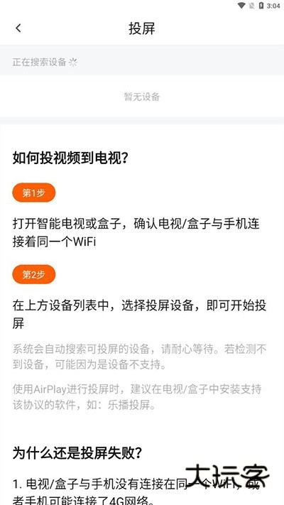 系统会自动搜索可投屏的设备,请耐心等待。若检测不到设备,可能因为是设备不支持;
