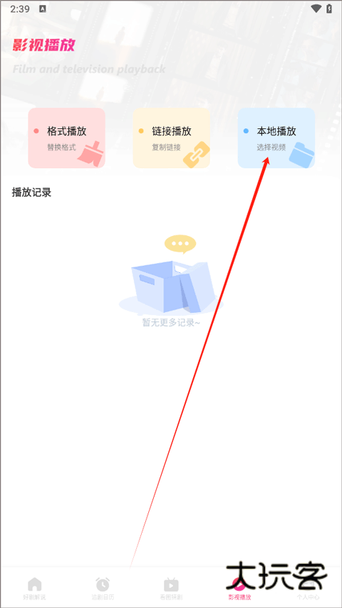 1、下载安装追剧达人后打开软件,点击影视播放;