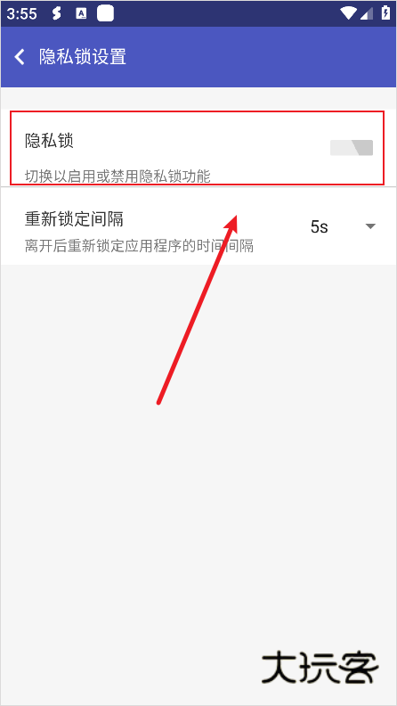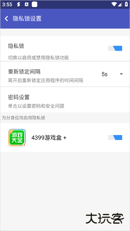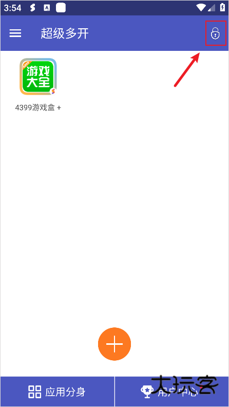 1、进入超级多开分身助手后,点击右上角的小锁图标。