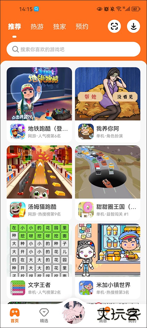 1、打开软件,进入首界面,不管是大厂商的新作还是非常热门的小游戏,都可以在首页中进行曝光展示,让玩家们一目了然;