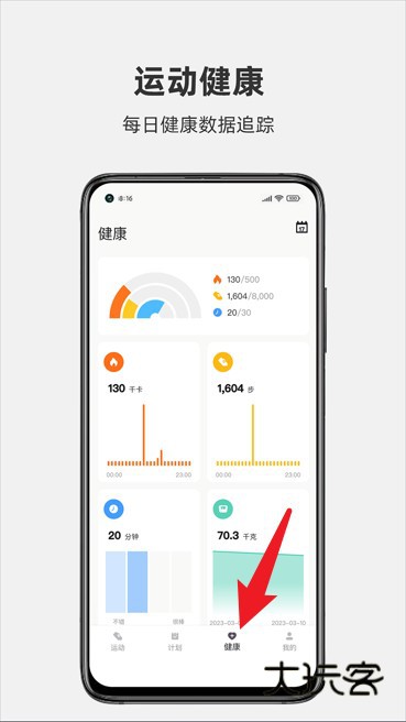 4、点击底部“健康”栏目可查看每日消耗、步数、体重等运动健康相关数据。
