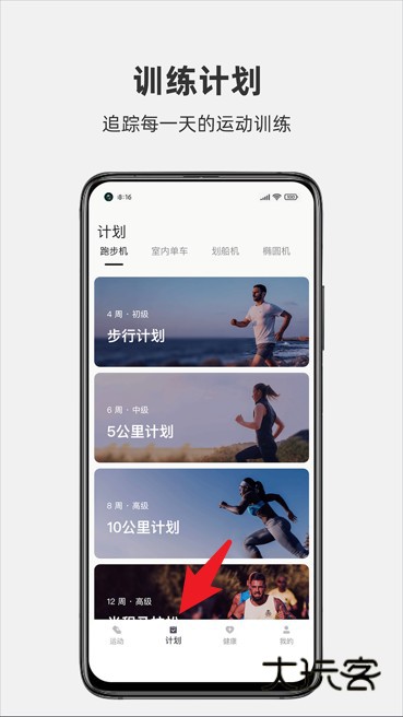 3、点击“计划”选项卡可查看并选择不同阶段的训练计划,支持个性化定制。