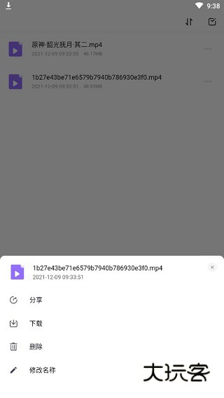 第四步。上传完成后即可在软件主页查看,可以点击右侧菜单按钮进行下载。如图所示。