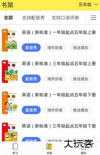 1、首先打开外研通英语APP,点击【书架】选择要下载的课本。
