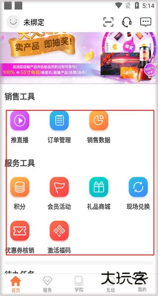 1、打开营养管家app,打开软件进入首界面,这里有大量服务工具和销售工具;
