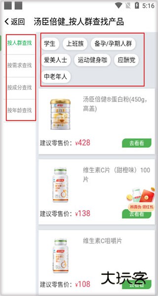 4、这里有众多产品,您可以按人群、需求学生等类别查找;
