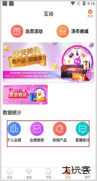 6、在互动这里可以看到自己的业绩、热销产品、直播统计。