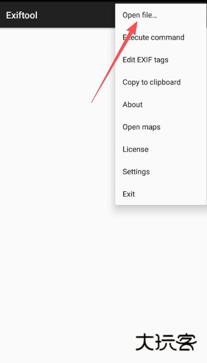 1、下载安装照片信息查看器Exiftool,点击如图所示箭头open file省略号的字母条。