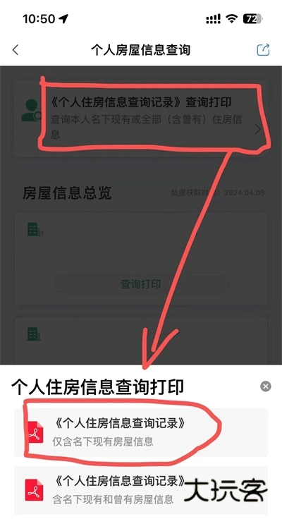 3、点击《个人住房信息查询记录》PDF文件,查看下方打印说明提示:查询个人现有的全部住房,也就是说只要归类为你名下的,都能够查到。