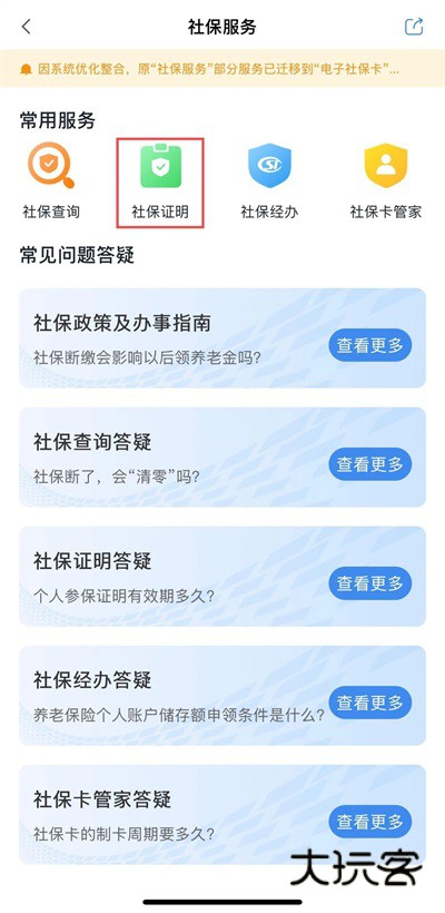 2、点击打开社保证明这一栏目,关于社保的政策办事指南以及答案部分,这里有做详细的汇总分类,按需点击不同栏目查看详细说明。