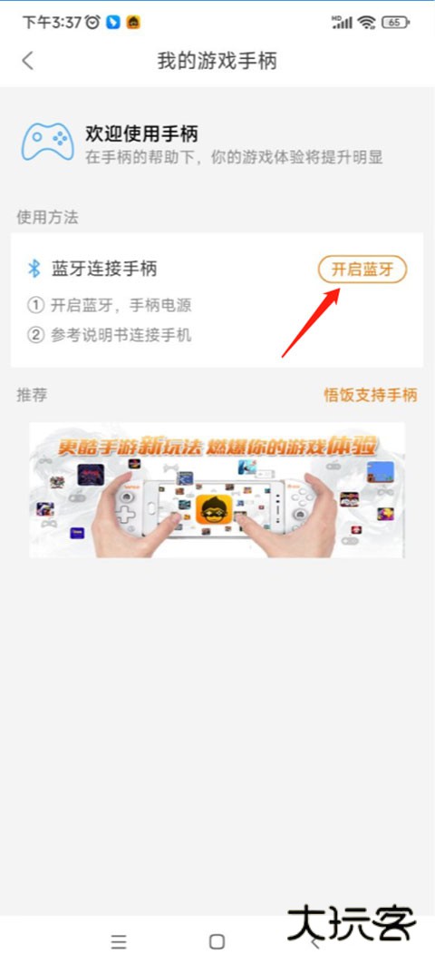 3、最后在这里就可以开启蓝牙进行连接手柄。