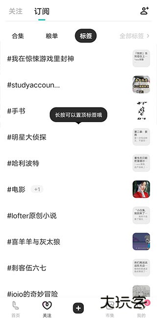 3、在LOFTER上,你可以找到20万+高热度的兴趣标签,快速找到圈内的小伙伴。无论你是影视发烧友、绘画摄影爱好者、二次元旅行文学爱好者、COS圈内人还是手游党,LOFTER都有相应的标签来承载你的兴趣。这样你可以与志同道合的人交流、分享创作,并找到更多的圈内朋友。