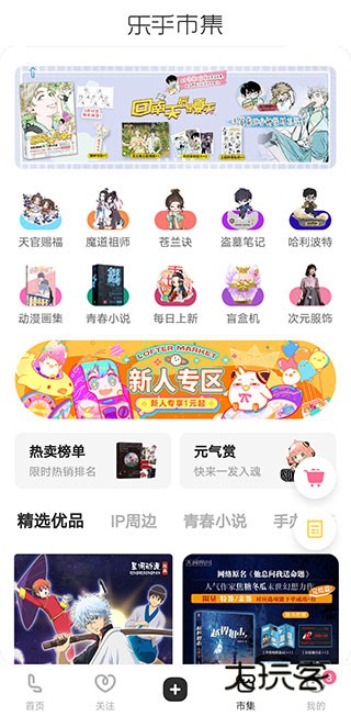 7、“市集”里是一个小小的娱乐书库,有小说、图书、周边以及手办等,内容很多,随时浏览查阅哦。