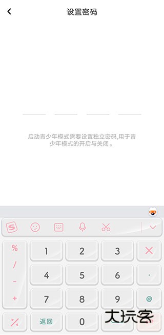 在“我的”页面,点击右上角设置,选择“青少年模式”,点击开启,然后输入密码即可。