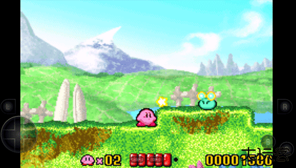 A 键让卡比跳跃。跳跃后再次快速按下 A 键,卡比会吸气使自己膨胀,进入悬浮飞行模式。