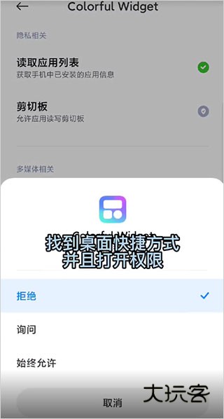 4、当弹出提示框时,点击去设置,会跳转到设置页面,找到桌面权限并打开权限;
