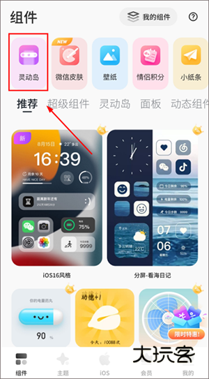 1、在首页的上方点击【灵动岛】