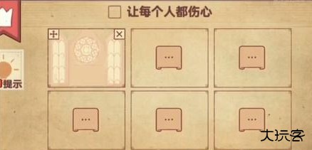 5、轮到 “墓地” 道具了,点它并拖进第三个虚线框。然后单独把 “张友志” 拖进这个有墓地的框里。别忘了,再把 “关淑慧”(注意名字变化)拖到场景里出现的墓碑上。这一操作会让男人心碎