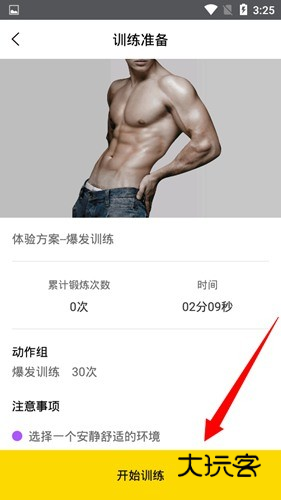 然后就会有专业的训练方案,因为是默认动作组,所以直接点击开始训练即可。
