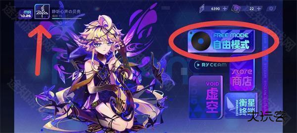 红色箭头所指的便是玩家的基本信息,包括玩家ID,镜阶和MR值。右侧的选项仅有自由模式可进入,其他选项暂未开放。而自由模式选项上方则是两种货币和设置。