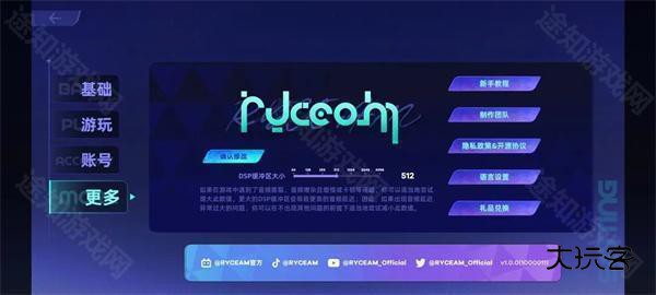 在此界面,玩家可以进行音频修复,通过调试DPS缓冲区大小使音频更顺畅。在右边也可以设置语言,兑换礼品等。