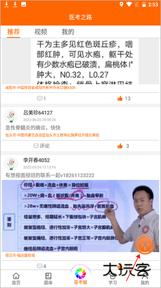 1、打开软件后,点击“医考圈”右下角的+号。