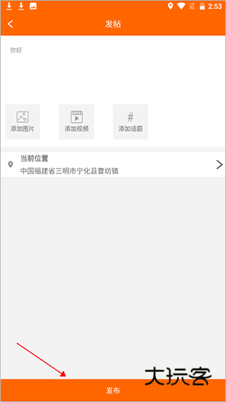 2、输入文字添加图片后,点击“发布”即可。
