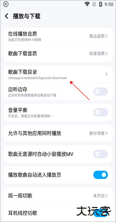 接着在打开的新页面中找到【歌曲下载目录】,记住下这里的下载地址