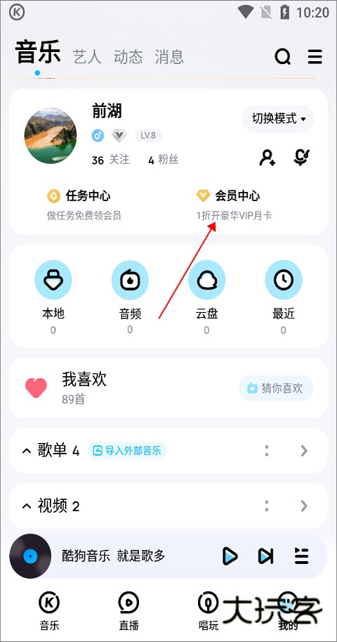 1、进入酷狗音乐app【我的】页面中点击【会员中心】