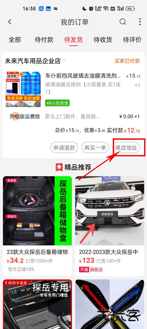 3、进入之后找到你想要修改地址的订单,在订单的右下方找到修改地址;